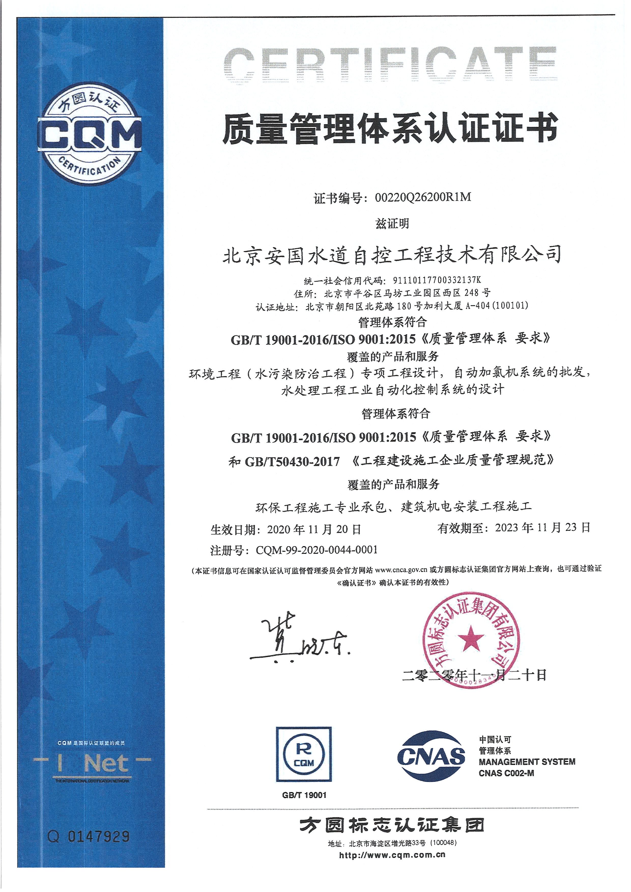 • 北京安國水道自控工程技術有限公司入駐中國給水排水品牌委員會